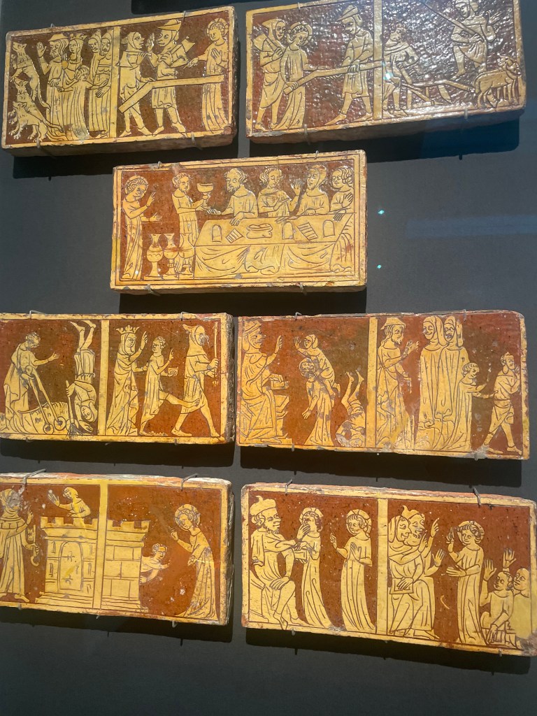 Tiles from the British Museum from the middle ages that depicted Jesus as a prankster. I found them amusing. And below my friend and I at the Fulham match at Craven Cottage.